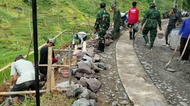 Talut Jalan Di Desa Semen Longsor Akibat Hujan Deras, Babinsa Dan Warga Gerak Cepat Kerja Bakti