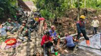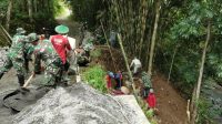 Babinsa Bersama Warga Laksanakan Karya Bakti Pembersihan Longsoran Tanah