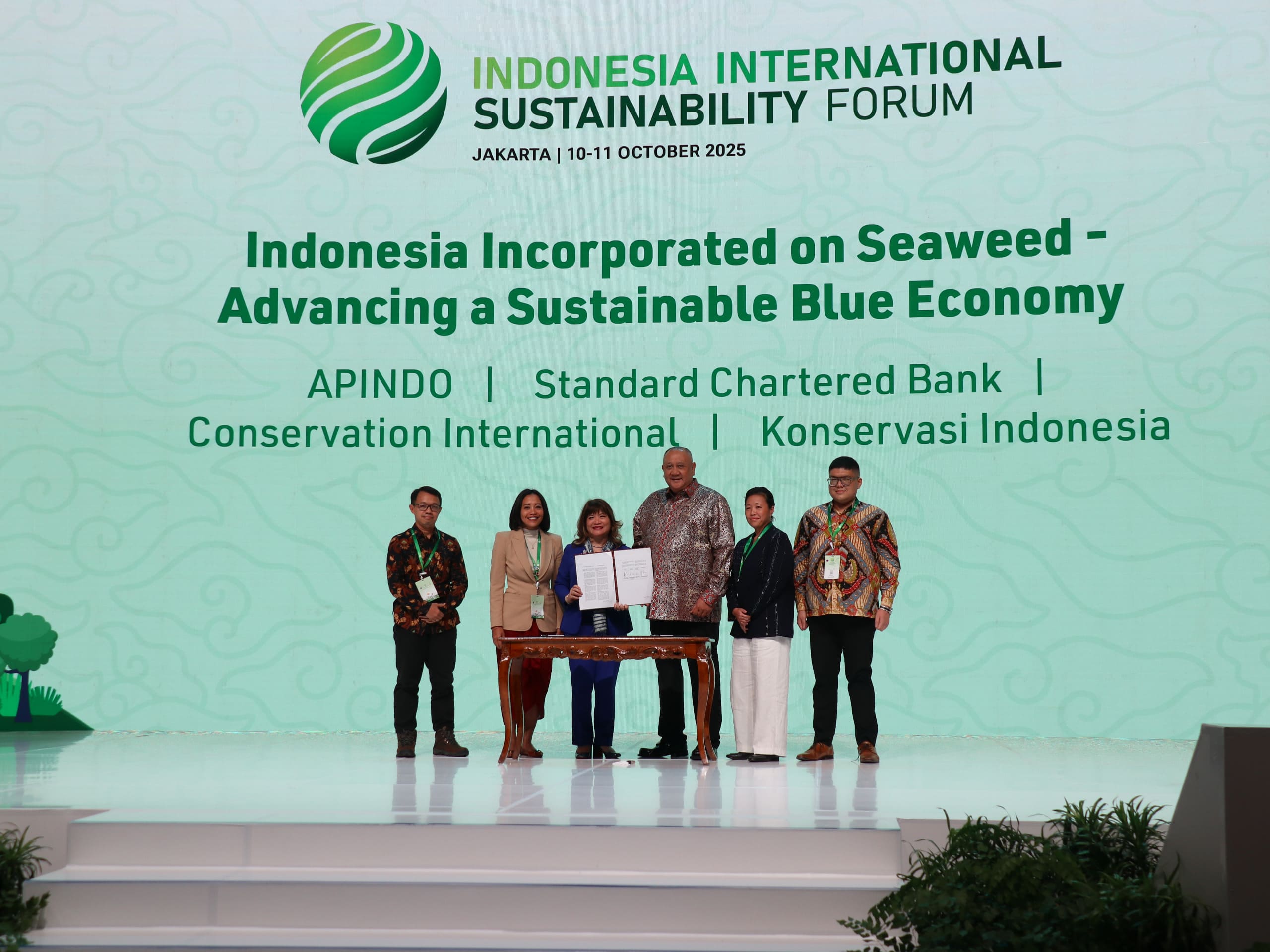 Indonesia Seaweed Initiative bertujuan membangun ekosistem terintegrasi dari hulu ke hilir, yang melibatkan sektor swasta, lembaga keuangan, pelaku konservasi, dan asosiasi usaha. Inisiatif ini menggabungkan kepemimpinan dan koordinasi dari APINDO, keahlian ilmiah dan teknis dari Conservation International dan Konservasi Indonesia, serta dukungan konsultasi pembiayaan berkelanjutan dan pengembangan kapasitas dari Standard Chartered untuk memperkuat ekosistem ekonomi biru Indonesia.
