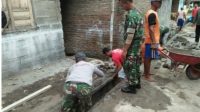 Cegah Banjir, Babinsa Ngemplak Ajak Warga Gotong Royong perbaikan Jalan dan Selokan