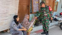Babinsa Kratonan Dampingi Pemberian Bantuan Beras Kepada Warga Gangguan Jiwa di Wilayahnya.