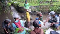 Jaga Kelancaran Pengairan Pertanian, Babinsa Desa Gondang Ajak Warga Kerja Bakti Memperbaiki Tanggul Sungai