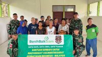 Satgas Pamtas Yonarhanud 1 Kostrad Bersama Yayasan Benih Baik Salurkan Bantuan Sembako di Wilayah Perbatasan