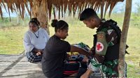 Satgas Pamtas Kewilayahan RI-PNG Yonif 410/Alg Laksanakan Yankes di Kampung Wanmar Distrik Tomage