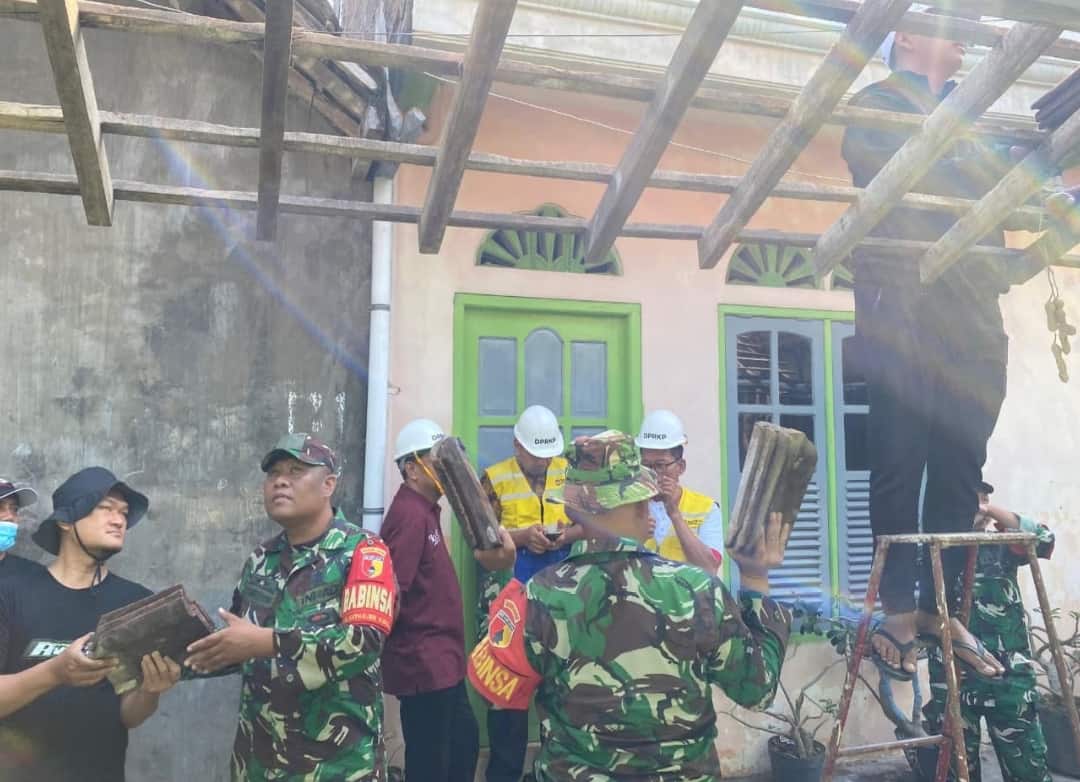 Babinsa Kepanjenkidul Bersama Warga Gotong Royong Renovasi Rumah Warga