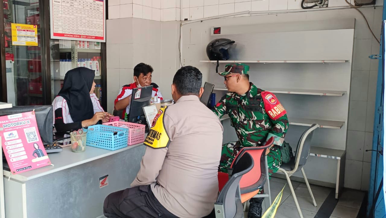 jurnalis.or.id – Babinsa Kratonan Koramil 03/Serengan Kopka Resbiyanto bersama Bhabinkamtibmas Aipda Danar Effendi pukul 09.00 wib melaksanakan kegiatan komsos di Dealer Taruna Jaya Motor Solo di Jl. Veteran No.180 Kel.Kratonan-Kec.Serengan, Kota Surakarta. Minggu (12 Oktober 2025).