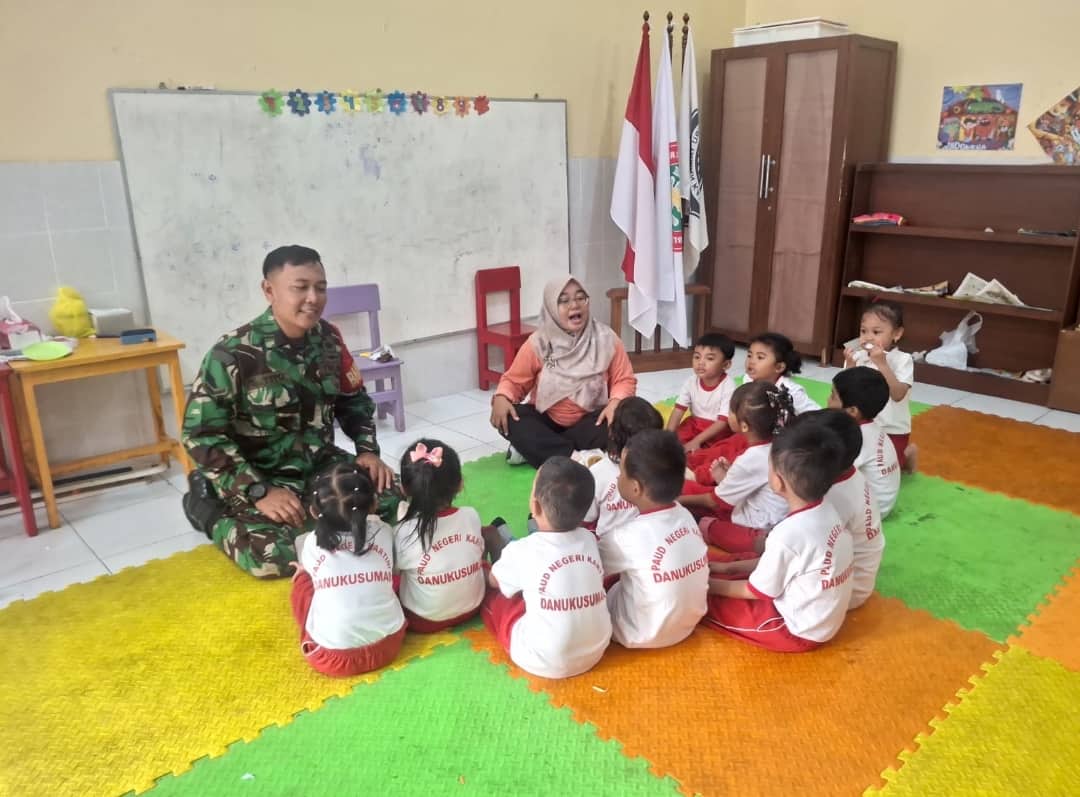 Pendidikan usia dini merupakan jenjang pendidikan sebelum anak-anak memasuki Sekolah Dasar yang merupakan suatu upaya pembinaan untuk kesiapan dalam memasuki pendidikan lebih lanjut agar nantinya tidak ketinggalan dalam mengikuti pelajaran, mereka merupakan generasi penerus bangsa yang harus dijaga, dididik dan dibina dengan baik dan benar sehingga nantinya diharapkan mereka bisa membawa indonesia yang maju dan kreatif dilingkup dunia, ungkap Serda Tito.