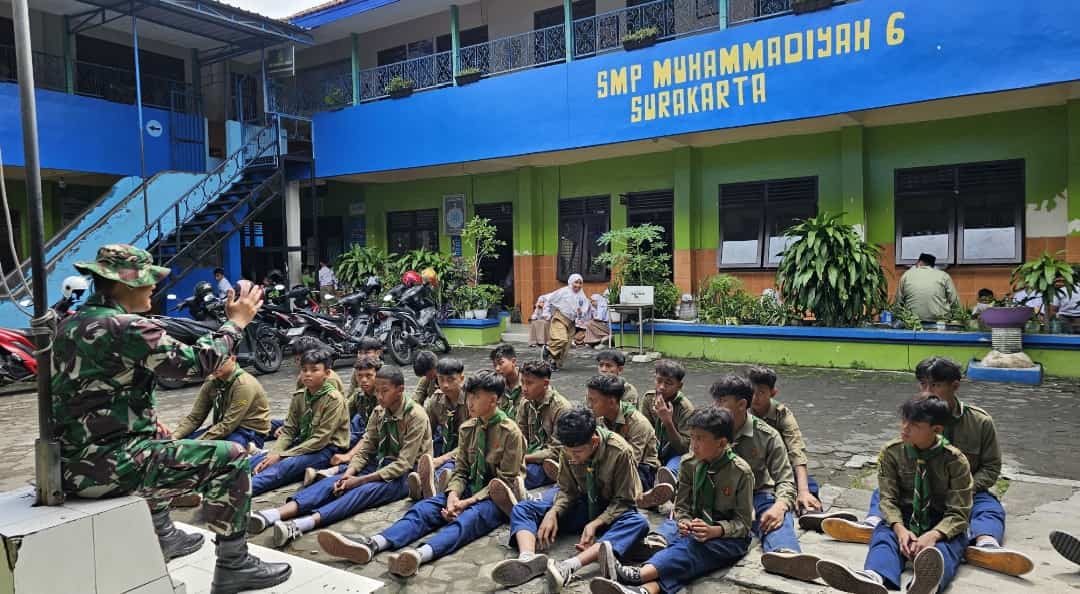 jurnalis.or.id – Sebagai bentuk kepedulian terhadap pembinaan generasi muda, Babinsa Tipes Koramil 03 Serengan Kodim 0735 Surakarta Serka Anjasmoro dan Serka Sarmin menghadiri undangan dari pihak SMP Muhammadiyah 6 Surakarta untuk mengisi kegiatan motivasi dan pembekalan wawasan keprofesian, bertempat di SMP Muhammadiyah 6 Surakarta di Jalan Pangeran Wijil No.1 Tipes kecamatan Serengan Kota Surakarta, Kamis, 18 Desember 2025. Pkl 10.00 Wib.