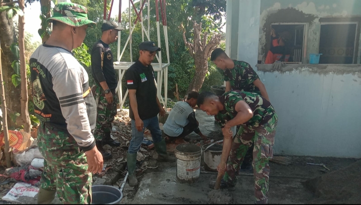 “Pengerjaan MCK ini, dilaksanakan anggota dibantu warga sekitar. Saat ini, pengerjaan sudah berjalan untuk pemasangan plafon dan plaster lantai.”pungkas Wadansatgas.