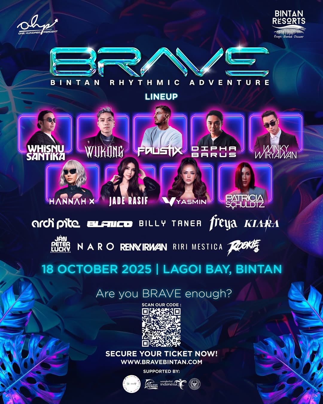 Siap-siap terhanyut di lautan gemerlap cahaya neon! BRAVE 2025 (Bintan Rhythmic Adventure) akan hadir sebagai festival musik elektronik dengan konsep Bioluminescence Beach Party pertama yang memadukan tropical vibes dan atmosfer rave futuristik dengan aksi panggung penuh energi dari line-up dj nasional hingga internasional untuk menciptakan pengalaman rave party kelas dunia. Acara ini akan digelar pada hari Sabtu, 18 Oktober 2025 dengan suguhan panggung ikonik di pesisir Pantai Lagoi, Bintan.