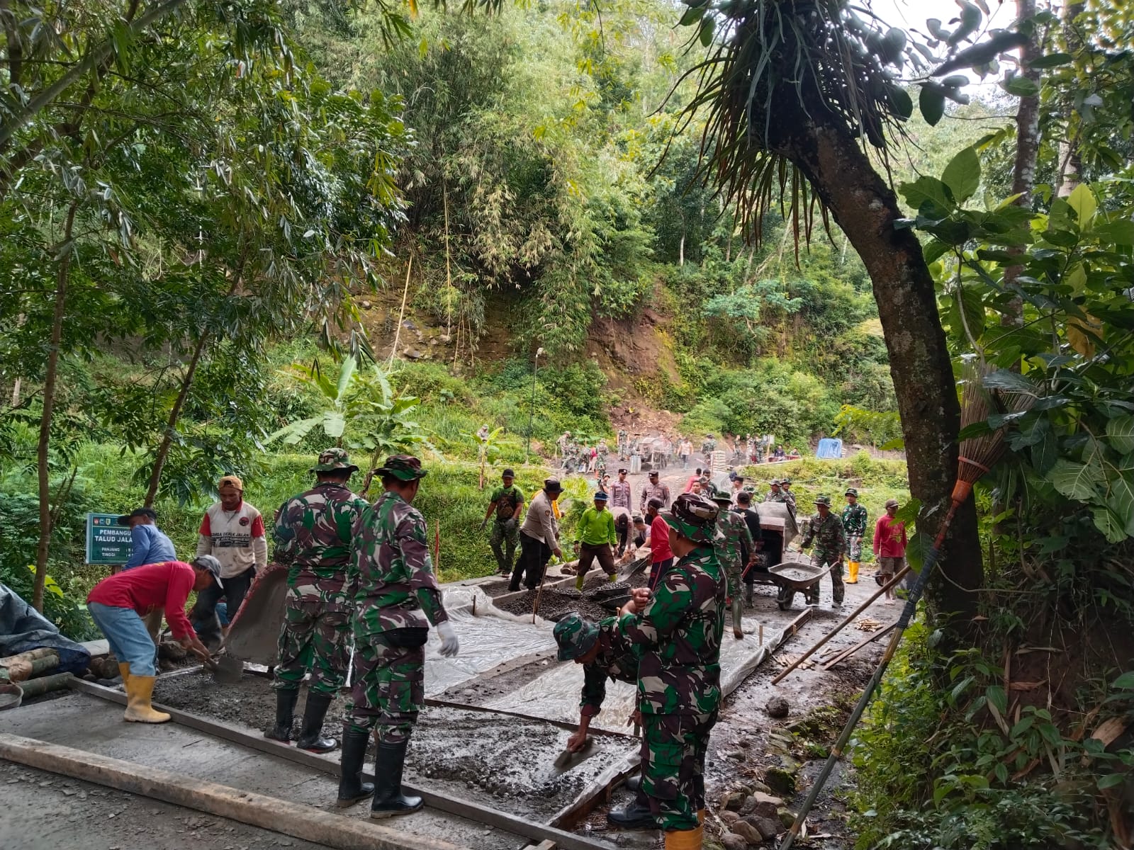 “Dengan suasana hari Minggu yang merupakan hari libur ditambah cuaca yang cukup dingin di lereng kaki Lawu, anggota Satgas TNI,Polri dan masyarakat tampak bersemangat menyelesaikan pengerjaan pengecoran jalan,” katanya.