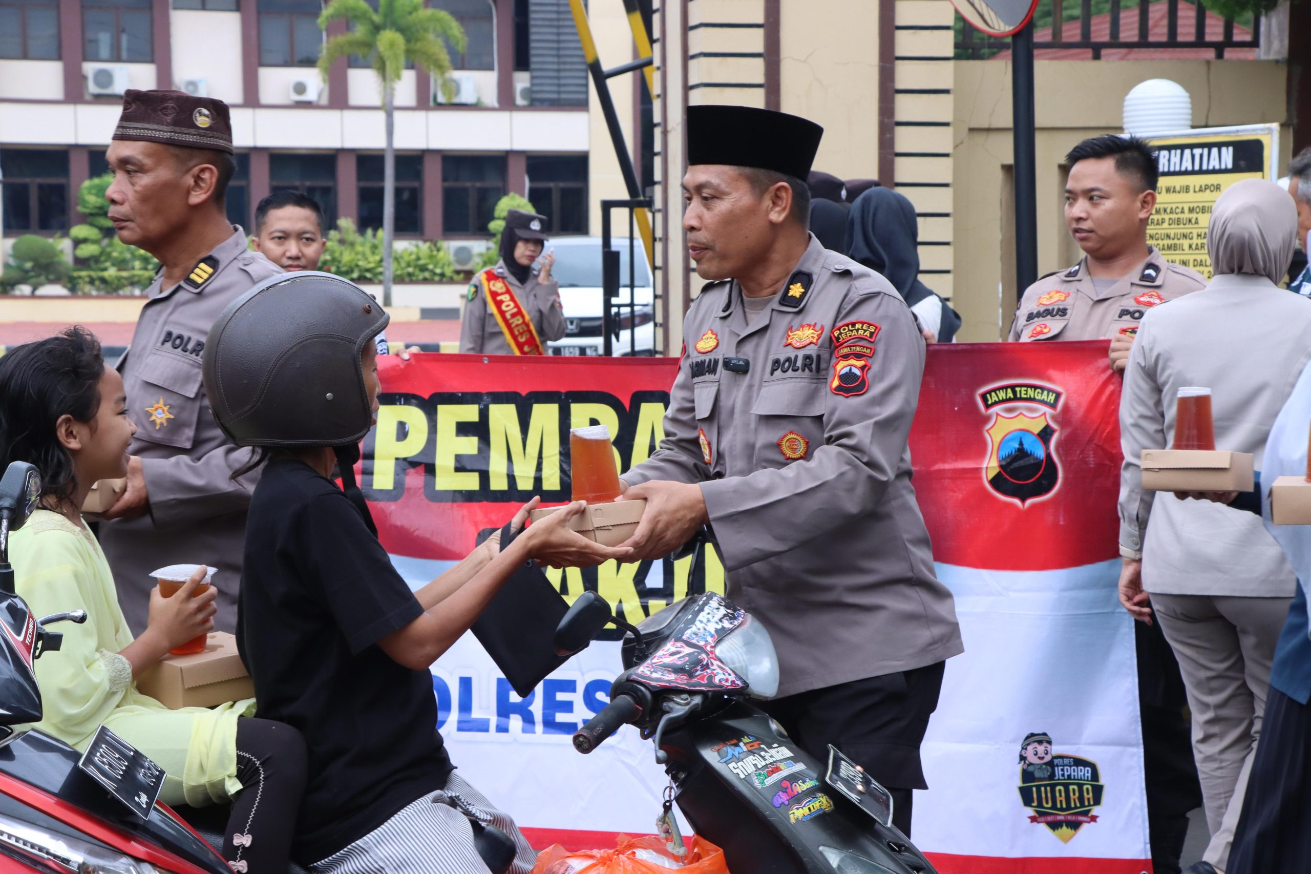 Sebanyak 150 paket takjil berisi makanan dan minuman dibagikan oleh personel Sidokkes Polres Jepara sebagai bentuk kepedulian di bulan suci Ramadan. Kegiatan ini disambut antusias oleh warga, terutama pengendara dan pejalan kaki yang melintas.