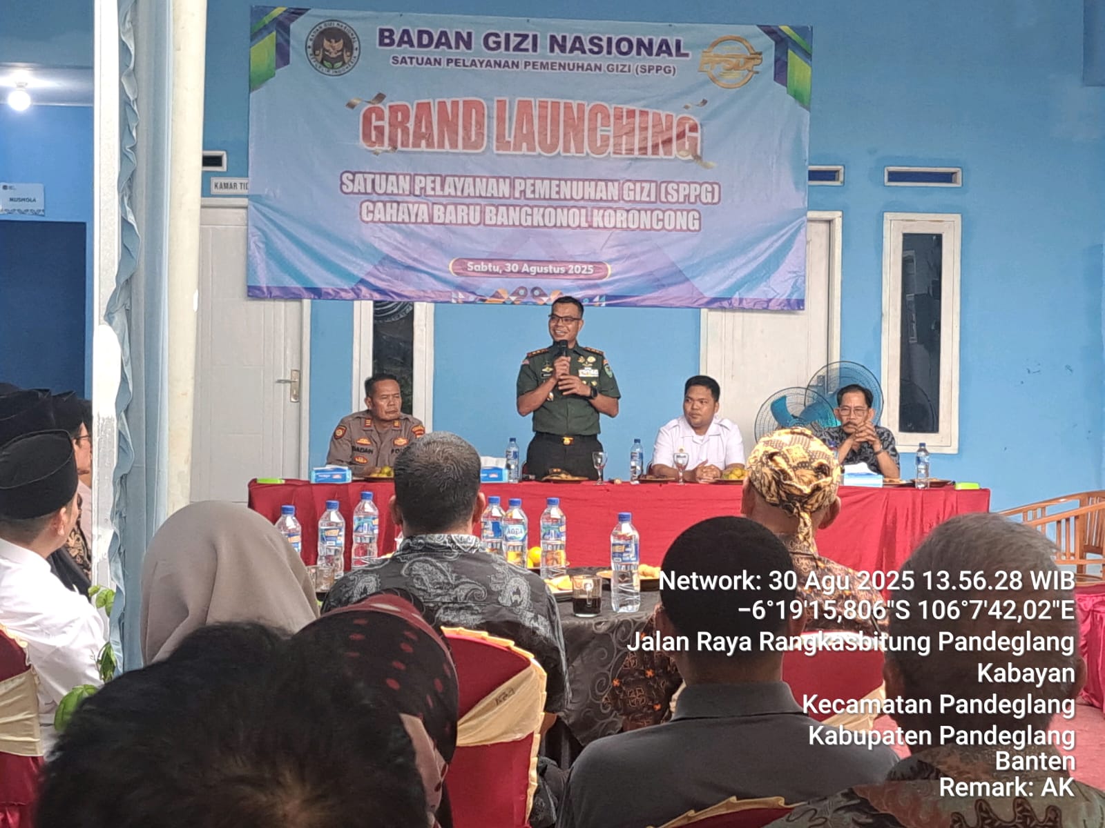 Dalam sambutannya, Ridwan selaku Kepala SPPG menjelaskan bahwa SPPG Cahaya Baru akan mulai beroperasi pada 3 September 2025 dengan kapasitas produksi mencapai 3.717 porsi makanan yang akan didistribusikan untuk anak sekolah di wilayah Kecamatan Koroncong dan Pandeglang.