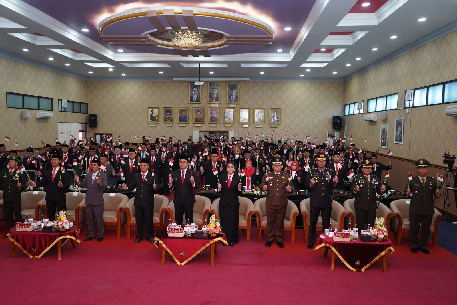 Selanjutnya, seluruh peserta mengikuti rangkaian rapat paripurna, termasuk pembukaan oleh Ketua DPRD Kota Blitar, menyanyikan lagu kebangsaan Indonesia Raya, mengheningkan cipta dan mendengarkan pidato kenegaraan Presiden RI H. Prabowo Subianto yang disampaikan secara virtual.