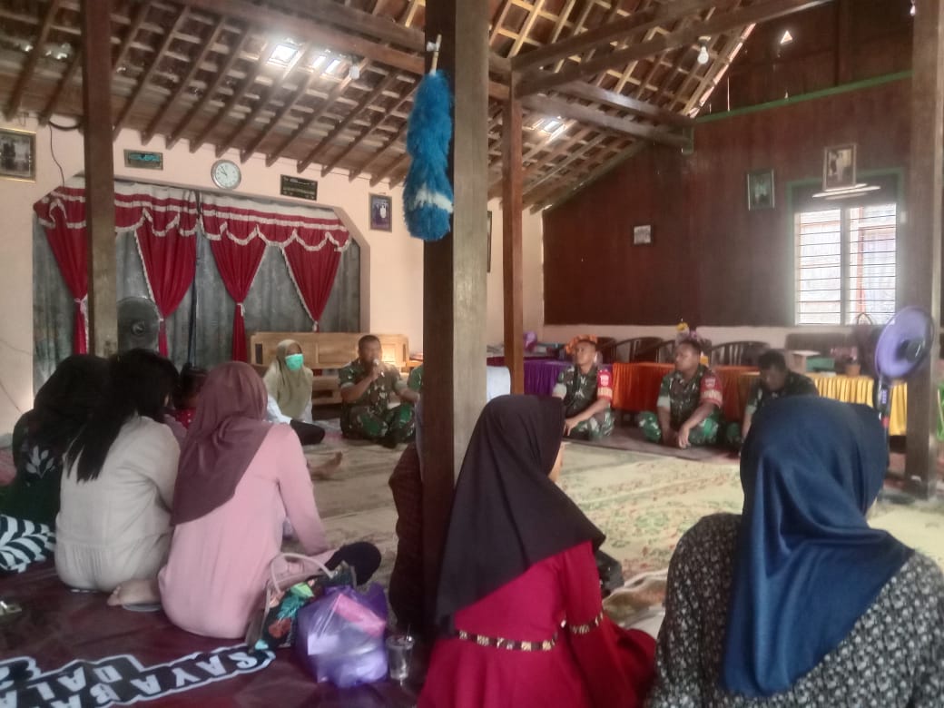 Kapten Inf. Dwi Cahyo memberikan materi tentang pentingnya menjaga kesehatan selama kehamilan, asupan gizi yang seimbang, serta deteksi dini terhadap potensi masalah kesehatan yang dapat mempengaruhi tumbuh kembang janin.