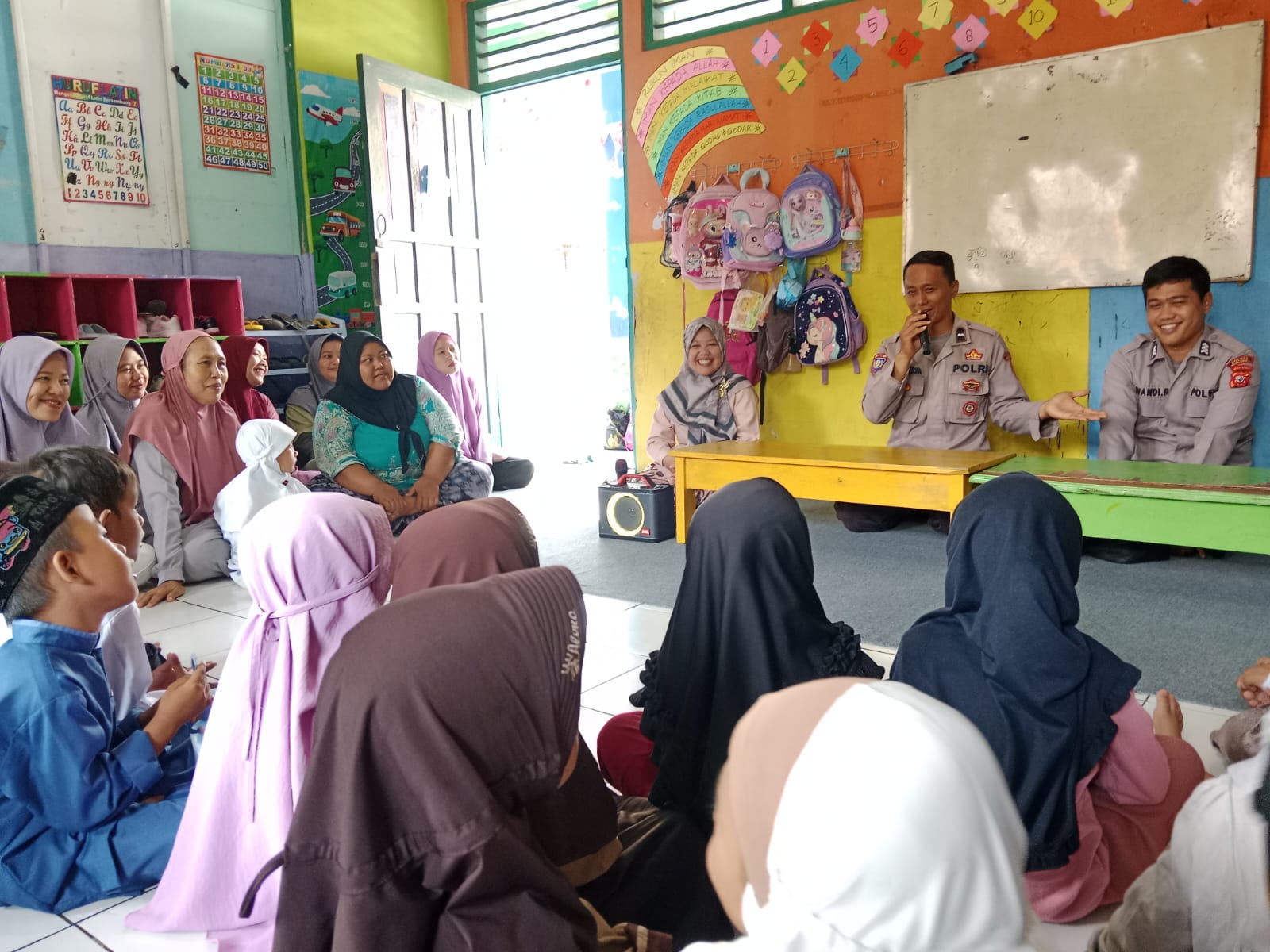 Kegiatan yang berlangsung penuh keakraban ini disambut hangat oleh para guru, murid, serta orang tua murid yang turut hadir. Dalam kesempatan tersebut, petugas kepolisian memberikan pengetahuan sederhana namun bermanfaat, mulai dari pengenalan rambu-rambu lalu lintas, tugas dan fungsi kepolisian, hingga edukasi mengenai pola hidup bersih dan sehat dalam kehidupan sehari-hari.