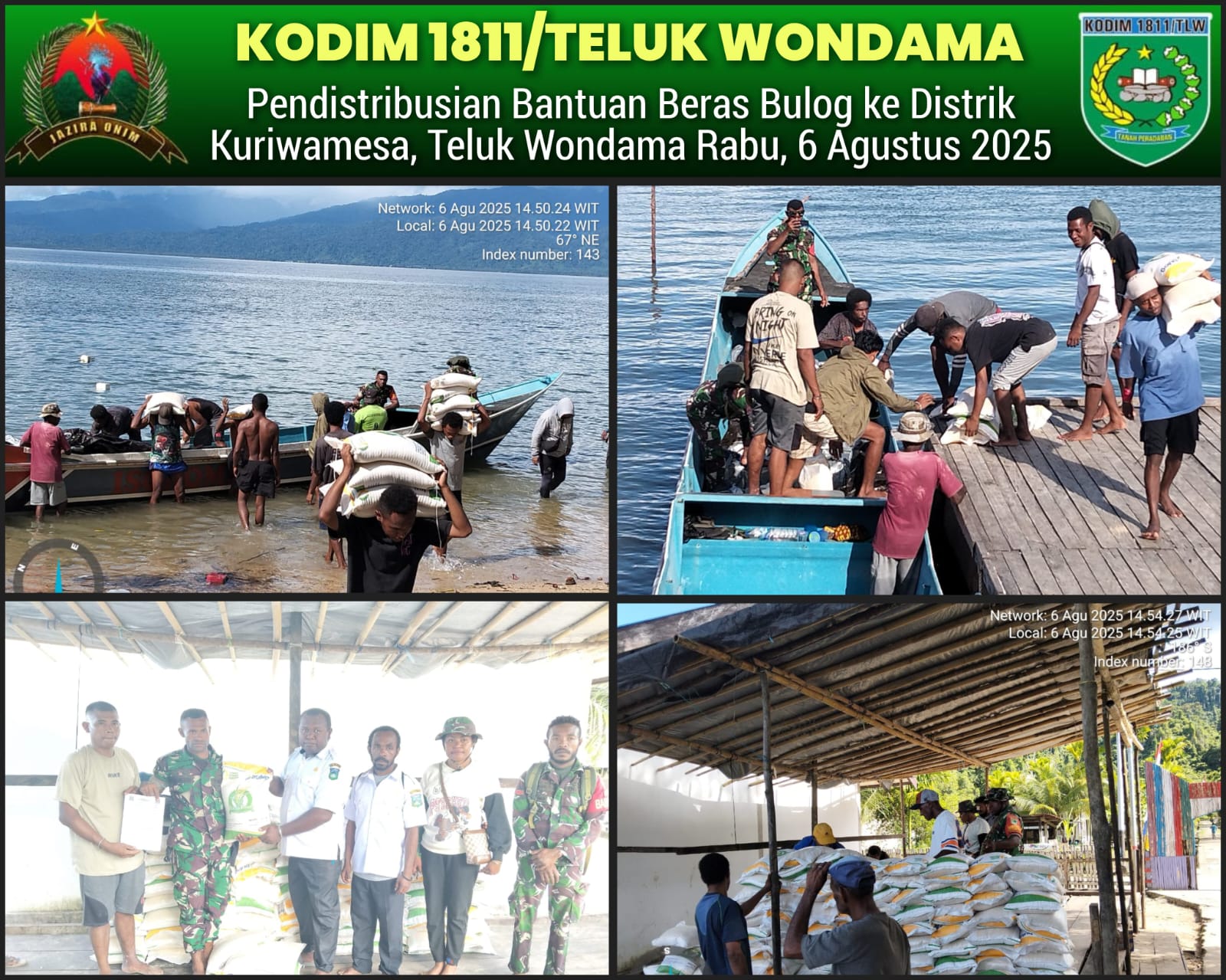 jurnalis.or.id – Pemerintah melalui Bulog Manokwari bekerja sama dengan TNI AD dari Kodim 1811/Teluk Wondama kembali menyalurkan bantuan pangan beras tahun 2025 ke wilayah-wilayah terpencil di Kabupaten Teluk Wondama. Kegiatan yang berlangsung sejak 31 Juli hingga 6 Agustus 2025 ini menjangkau 13 distrik dengan total 5.597 karung beras @10 kg.