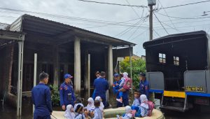Jurnalis.or.id // Polda Jateng-Kota Semarang | Aksi kemanusiaan dilakukan jajaran Direktorat Kepolisian Perairan dan Udara (Ditpolairud) Polda Jawa Tengah untuk membantu anak-anak di wilayah terdampak banjir. Mengandalkan perahu karet dan truk polisi, para personel Ditpolairud mengevakuasi sekaligus mengantar jemput para pelajar agar tetap bisa bersekolah di tengah genangan air di wilayah Kecamatan Sayung, Kabupaten Demak.