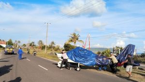 Petugas langsung melakukan proses evakuasi dan memasang garis polisi di lokasi jatuhnya pesawat. Kemudian tampak di luar area, warga terus bertambah karena ingin melihat proses evakuasi pesawat supaya terhindar dari air pasang laut.