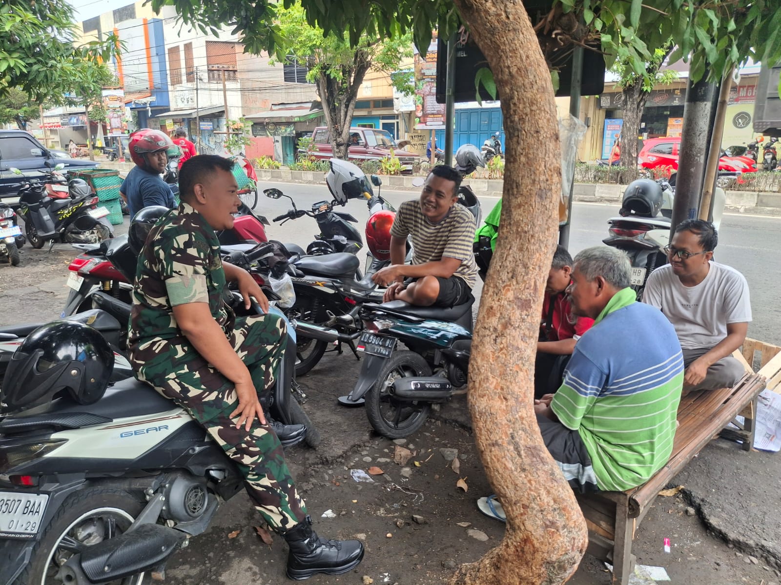 jurnalis.or.id, Surakarta – Babinsa Danukusuman Koramil 03/Serengan Kodim 0735 Surakarta Serda Tito melaksanakan Komsos dengan Bpk. Suryo di Halaman Pasar Harjodaksino Danukusuman Serengan Kota Surakarta, Senin pukul 09.00 Wib. (03/11/2025)