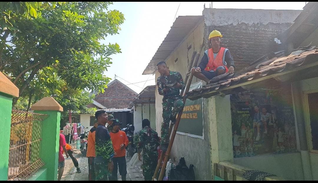 “Anggota TNI yang tergabung dalam Satgas TMMD bersama-sama dengan warga masyarakat melaksanakan pembongkaran atap rumah dilanjutkan dengan proses pengerjaan renovasi.”tuturnya.