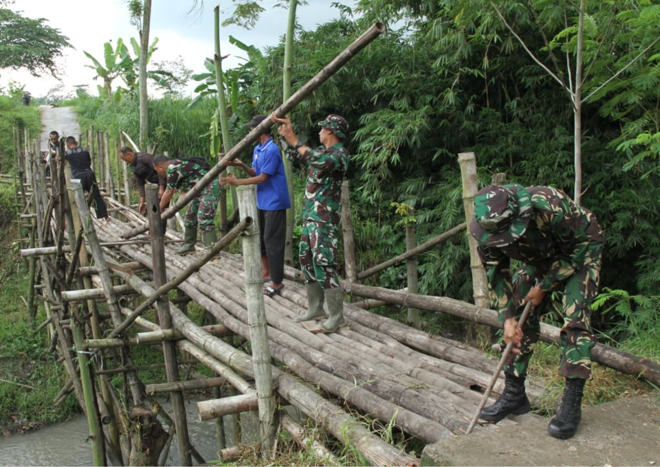 TNI-AD melalui Kodim 0808/Blitar hari ini melaksanakan pembangunan Jembatan Perintis Garuda sebagai bentuk respons cepat terhadap kebutuhan masyarakat akan sarana infrastruktur yang layak, Minggu (11/1/2206).