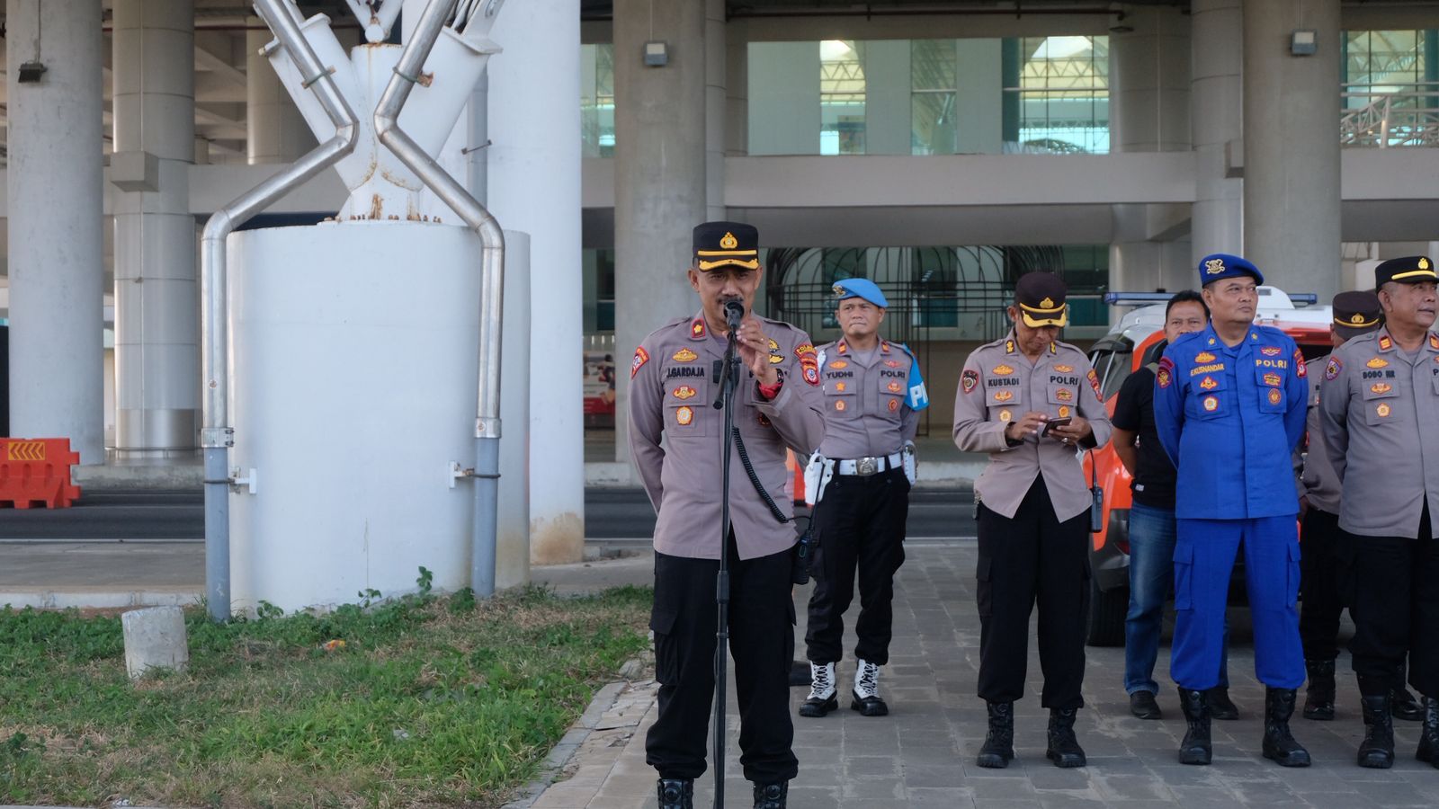 “sengaja kita berkumpul pada hari ini, dalam rangka mengecek kesiapan kita dalam rangka pengamanan rangkaian kunjungan Bapak Kapolri lending di BIJB Kertajati menuju Cirebon.