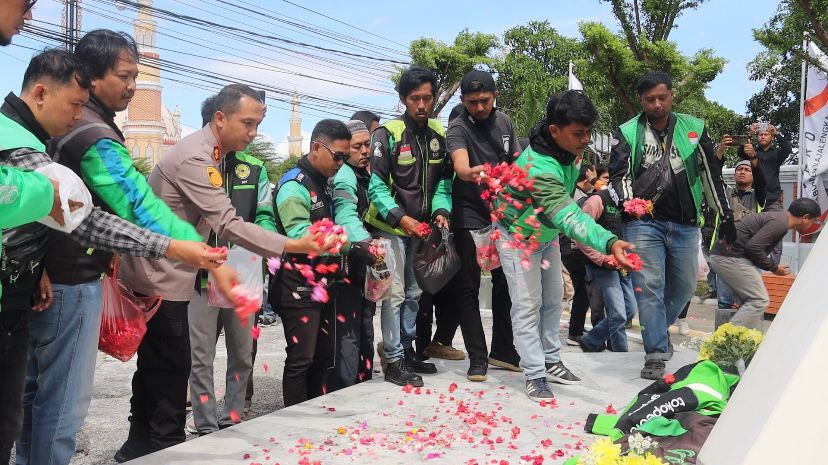 Aksi damai berupa doa bersama dan tabur bunga itu digelar di depan Gedung Juang tepatnya di depan Gedung DPRD Kabupaten Majalengka, pada Sabtu (30/8/2025) siang.Selain diikuti Ratusan driver ojol, aksi damai juga dihadiri Kapolres Majalengka AKBP Willy Andrian jajaran Pejabat Utama (PJU), dan anggota Polres Majalengka.