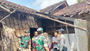 Kapolsek Lemahsugih Bersama Anggota dan Koramil Tinjau Rumah Roboh di Desa Sukamaju