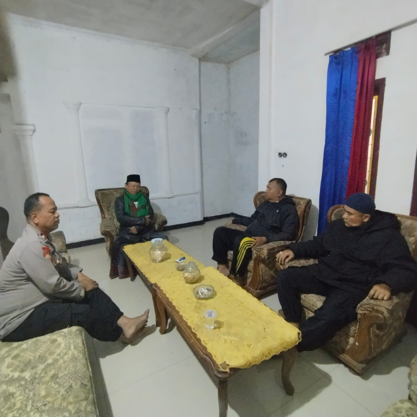 Kapolsek Malausma bersama personel Polsek Malausma berbaur dan berdialog santai dengan Tokoh Masyarakat Desa Sukadana Abah Kurdi terkait kondisi keamanan dan ketertiban di lingkungan sekitar.
