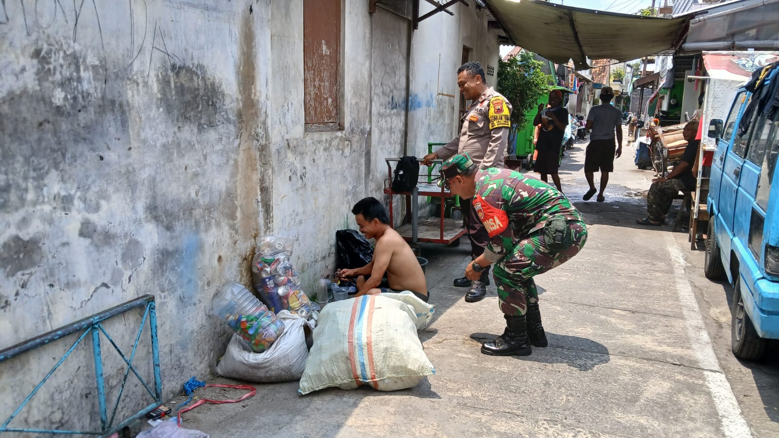 Kegiatan Komunikasi Sosial (Komsos) yang dilakukan oleh Babinsa dengan warga yang mencari atau mengepul botol bekas adalah bagian dari upaya pembinaan teritorial (Binter) untuk menjalin kedekatan, memberikan motivasi, serta menyampaikan imbauan kamtibmas dan kebersihan lingkungan.