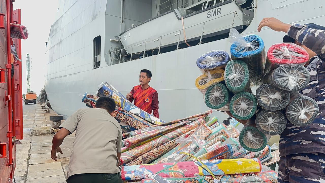 KRI Semarang-594 dengan Komandan KRI Letkol Laut (P) Agus Yunianto, membawa berbagai bantuan logistik dan material dari kementerian, lembaga, BUMN, komunitas, serta unsur TNI sebagai wujud sinergi dan kepedulian terhadap masyarakat terdampak bencana.