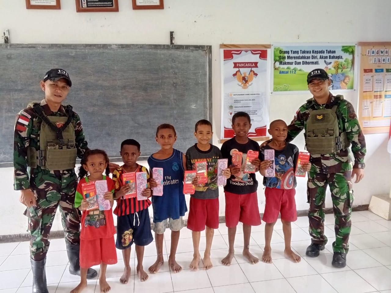 Senyum ceria pun menghiasi wajah-wajah polos anak-anak yang menerima bingkisan tersebut.“Kami ingin membangun kedekatan dan memberikan semangat belajar kepada adik-adik di SD Inpres Yamara,” ujar Serda Arya di sela kegiatan.Aksi humanis ini pun mendapat sambutan hangat dari para guru dan warga sekitar.