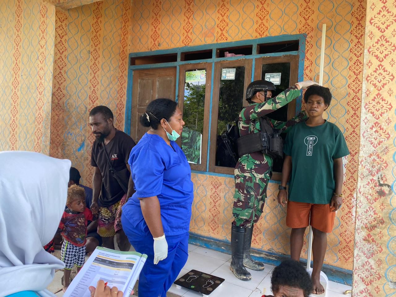 Kegiatan Pelayanan Kesehatan dan Baksos Satgas Pamtas RI-PNG Kewilayahan Yonif 410/Alugoro Pos Tahota yang dipimpin oleh Letda Ckm Ujang. S. Farm bersama anggota kesehatan dan sepuluh personel, melaksanakan kegiatan Baksos (Posyandu) berkolaborasi dengan PKM Tahota program bulanan bagi masyarakat di Kampung Seimeba Rk 2, Distrik Tahota, Kabupaten Mansel, Provinsi Papua Barat.