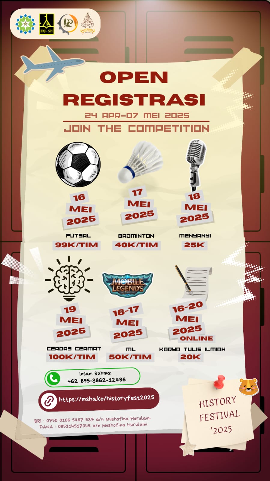– Pendaftaran melalui : https://msha.ke/historyfest2025