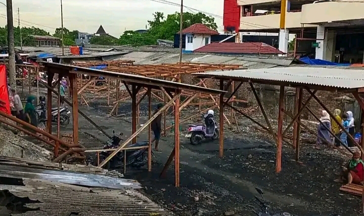Upaya pembangunan kembali lapak para pedagang diperkirakan masih akan terus berlangsung dalam beberapa hari ke depan seiring mereka menata dan memperbaiki area perdagangan yang terdampak.