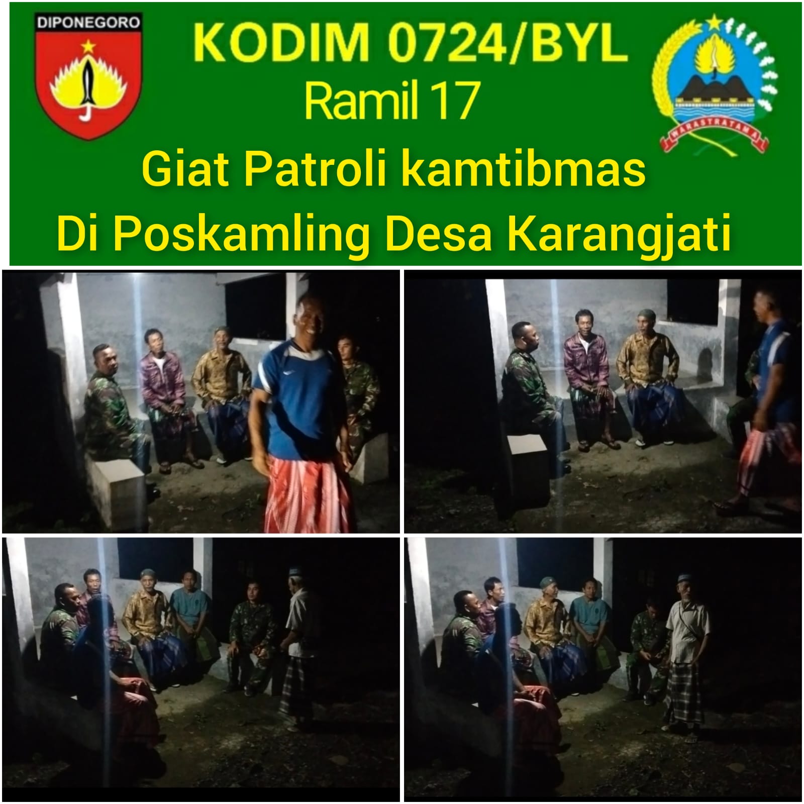 jurnalis.or.id, Boyolali — Upaya menjaga keamanan dan ketertiban masyarakat terus dilakukan aparat kewilayahan. Babinsa Koramil 17/Wonosegoro Kodim 0724/Boyolali, Sertu Vera Dani, melaksanakan patroli malam di Desa Karangjati, Kecamatan Wonosegoro, Kabupaten Boyolali, Sabtu (28/02/2026), sebagai langkah preventif menciptakan situasi wilayah yang aman dan kondusif.