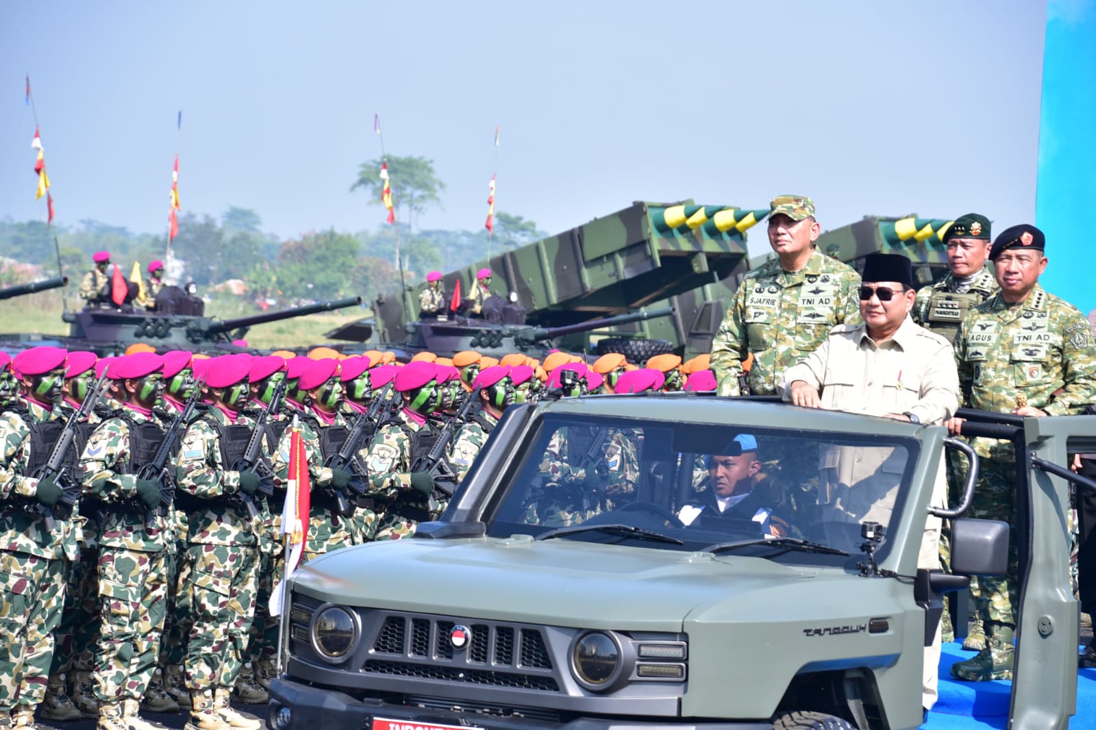 Pada kesempatan ini Presiden H. Prabowo Subianto resmi melantik tiga Panglima pasukan elite TNI dalam Upacara Kehormatan Militer di Pusat Pendidikan dan Latihan Pasukan Khusus TNI AD, Batujajar, Bandung Barat, Jawa Barat. Selain itu, Prabowo juga kembali melantik Panglima Komando Pertahanan Udara Nasional (Pangkohanudnas).