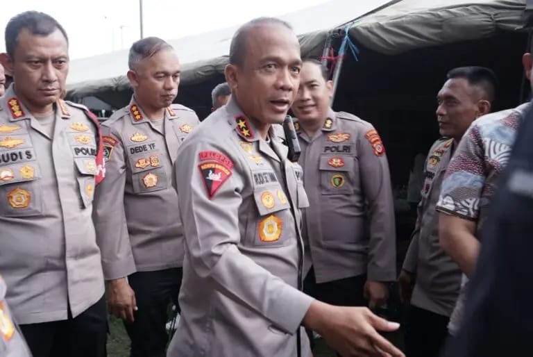 Kapolda Jabar Irjen Pol. Rudi Setiawan didampingi Wakapolda Jabar serta Pejabat Utama Polda Jabar melakukan pengecekan terhadap personel yang melaksanakan pengamanan pertandingan sepak bola BRI Super League antara Persib Bandung VS Persebaya