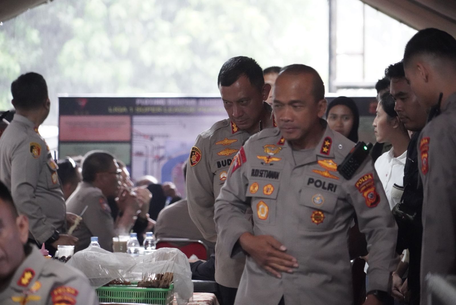 Kapolda Jabar Irjen Pol. Rudi Setiawan didampingi Wakapolda Jabar serta Pejabat Utama Polda Jabar melakukan pengecekan terhadap personel yang melaksanakan pengamanan pertandingan sepak bola BRI Super League antara Persib Bandung VS Persebaya