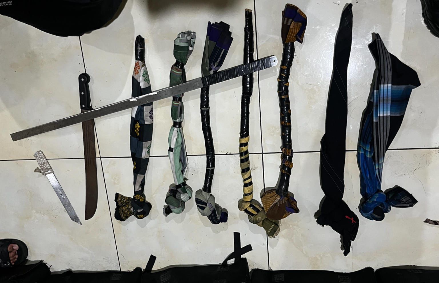 Kabid Humas Polda Jabar Kombes Pol. Hendra Rochmawan S.I.K., M.H mengatakan bahwa dari tangan para pelaku, petugas turut mengamankan sejumlah barang bukti berupa 8 sarung berisi batu, 1 penggaris pendek yang ditajamkan, 1 penggaris panjang yang ditajamkan, 1 bilah golok, serta 7 unit kendaraan roda dua yang digunakan para pelaku.