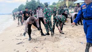 Polisi Dan TNI Berkolaborasi Membersihkan Pantai Teluk Awur Jepara
