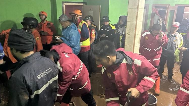 Polisi Evakuasi Korban Longsor di Megamendung dan Cisarua