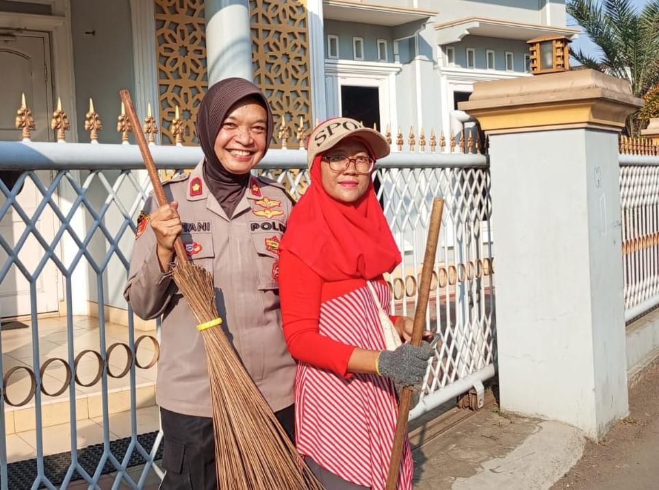 Polisi Pimpin Pasukan Ibu- Ibu, Lakukan Bakti Sosial Bersihkan Lingkungan