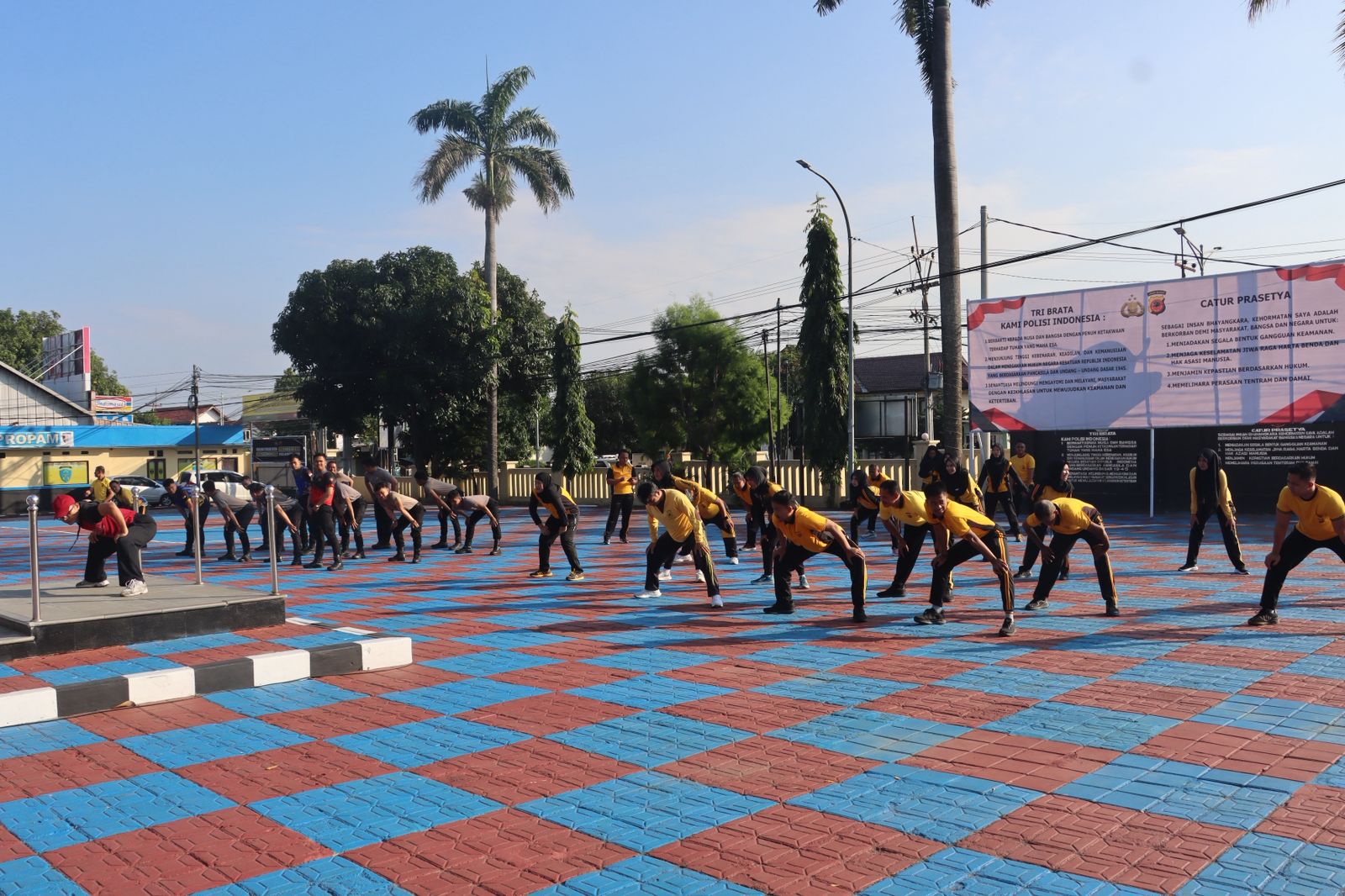 Apel pagi diawali dengan penyampaian arahan dari pimpinan apel yang menekankan pentingnya menjaga kedisiplinan, semangat kerja, serta meningkatkan pelayanan kepada masyarakat. Usai pelaksanaan apel, seluruh personel melanjutkan kegiatan dengan senam bersama yang dipandu oleh instruktur, dilanjutkan olahraga mandiri seperti jalan santai, jogging, hingga olahraga permainan.