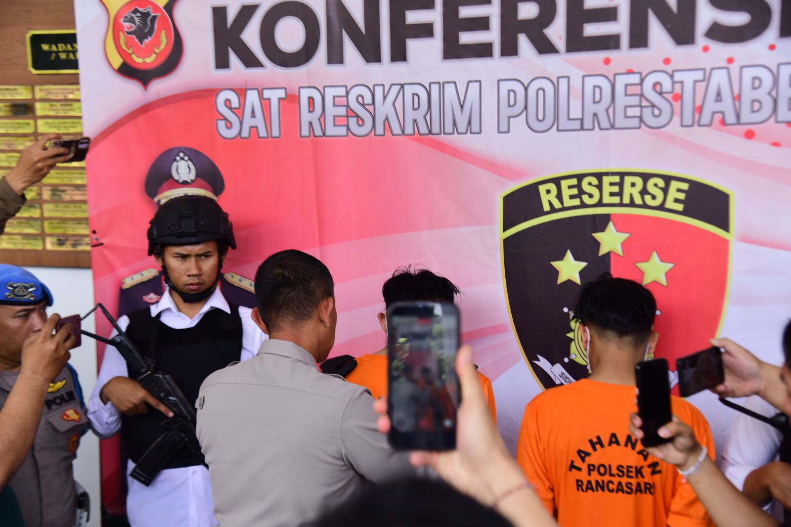 Pihak Polsek Rancasari turut menyita sebilah golok dan stik golf sebagai barang bukti kejahatan.