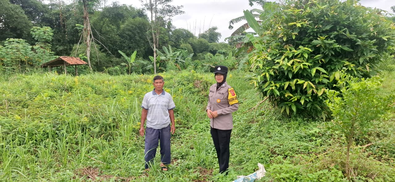 Polwan Bhabinkamtibmas Polsek Sukahaji Sambangi Lahan Perkebunan, Sampaikan Pesan Kamtibmas kepada Warga