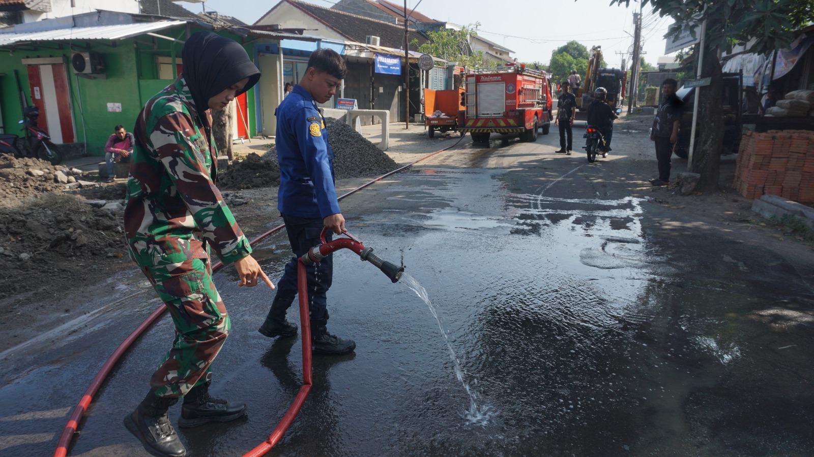 jurnalis.or.id – Satgas TMMD Reguler ke-125 Kodim 0735/Surakarta merespons cepat keluhan warga dengan menggandeng Dinas Pemadam Kebakaran (Damkar) Kota Surakarta untuk melaksanakan penyemprotan debu di sekitar lokasi TMMD.