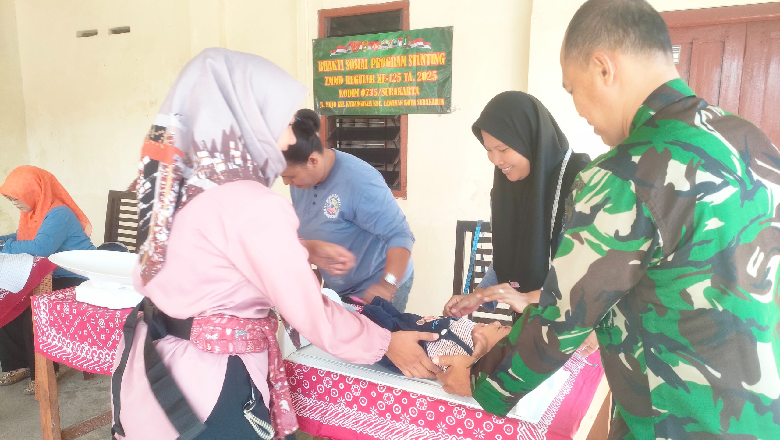 jurnalis.or.id – Satuan Tugas (Satgas) TNI Manunggal Membangun Desa (TMMD) Reguler ke-125 Kodim 0735/Surakarta bekerjasama dengan Dinas Kesehatan Kota Surakarta menggelar kegiatan sosialisasi tentang penanganan dan pencegahan stunting, bertempat di Pendopo Kelurahan Karangasem, Kecamatan Laweyan, Sabtu (02/08/2025)