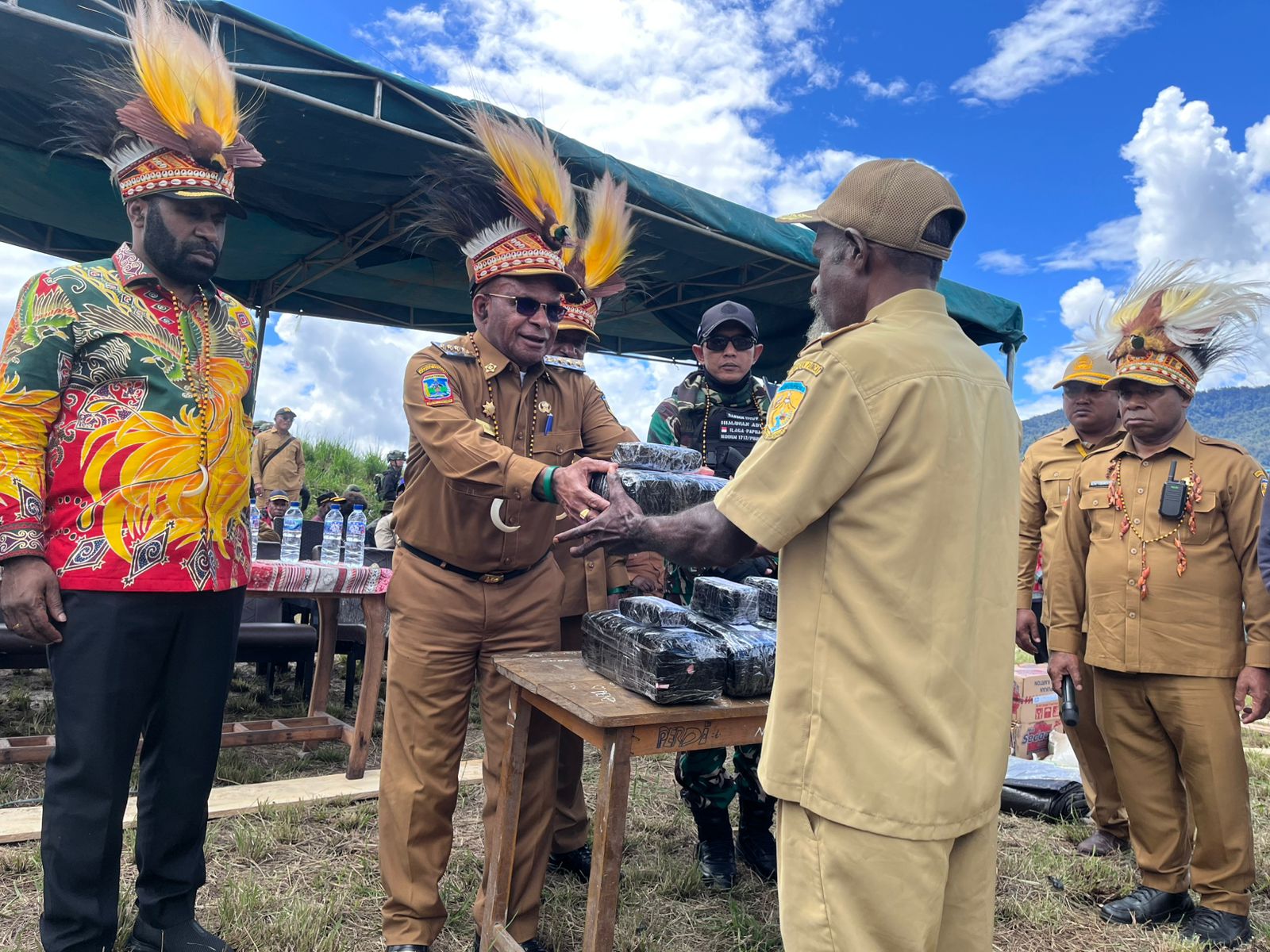 Momentum Penyerahan Bantuan dan Dialog AspiratifRangkaian kegiatan dimulai dari penyambutan di Bandara Tigiles Sinak, dilanjutkan dengan tradisi bakar batu di Lapangan Gudang Logistik BNPB, hingga penyerahan Dana Kampung secara simbolis oleh Bupati kepada para kepala kampung, yang menandai dimulainya pembangunan berbasis desa.